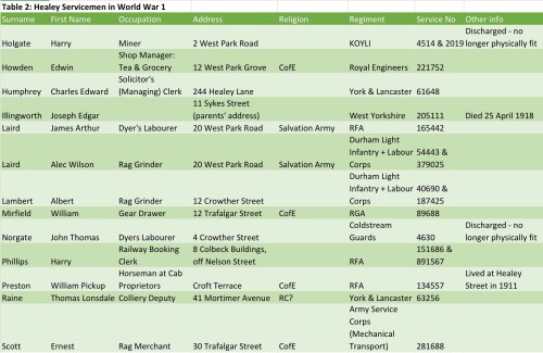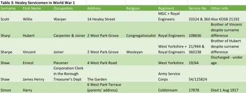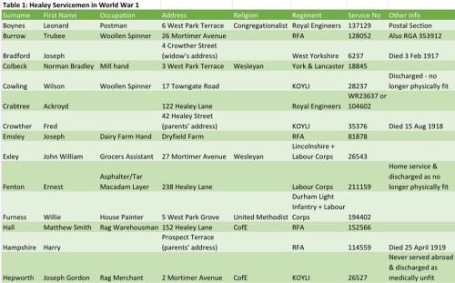 • CWGC information of the dead, where next of kin addresses mention addresses from the Healey, Batley area;