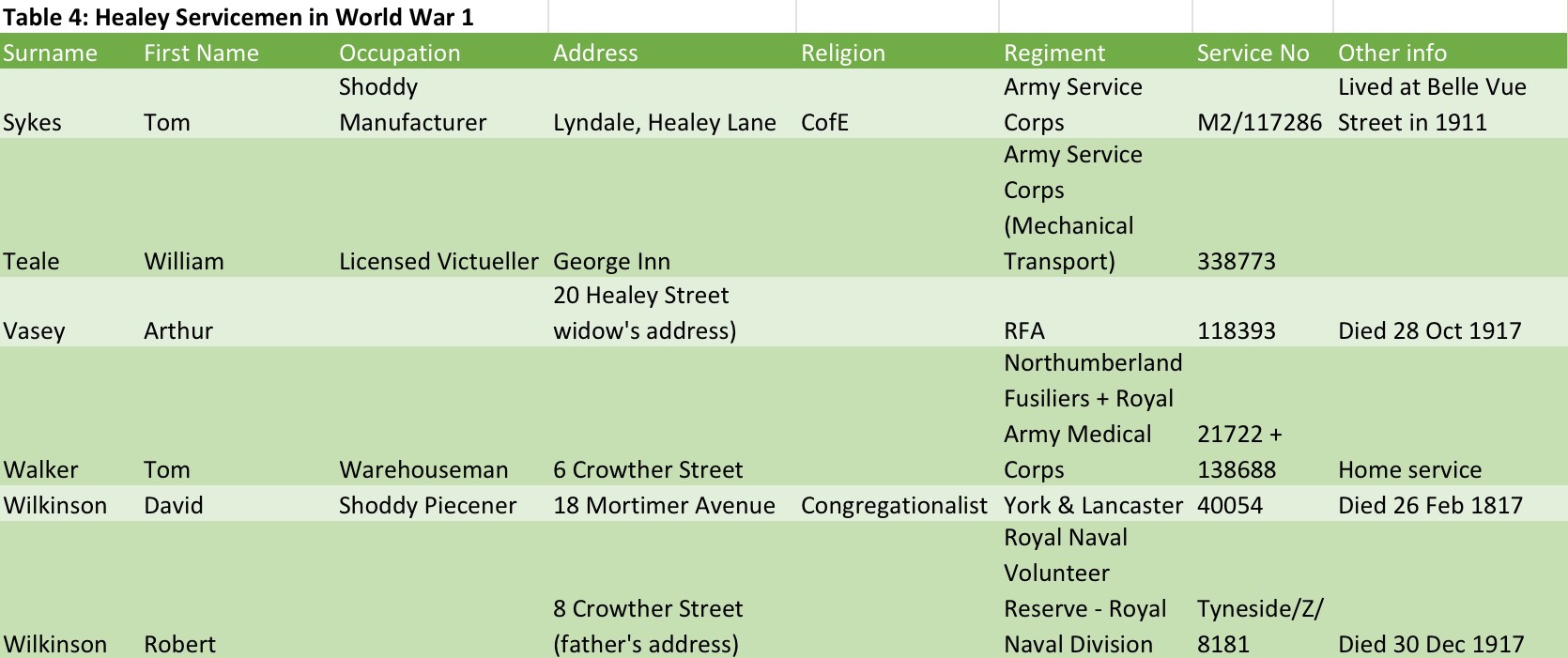 • CWGC information of the dead, where next of kin addresses mention addresses from the Healey, Batley area;