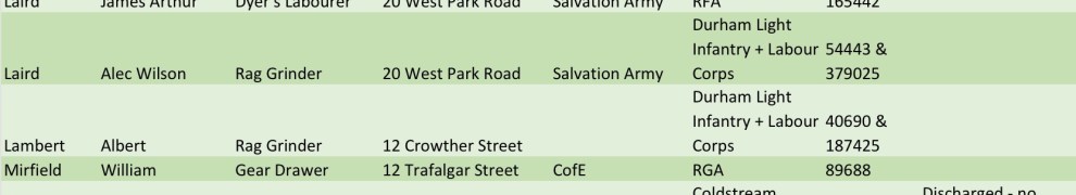 I would love to try to find out about all those from the broader Batley area, to complement this Soothill treasure.  But doing this alone is impracticable. Time and record survival are the major stumbling blocks. Key to providing addresses are service records. But about two thirds of soldiers’ service records were totally lost or irretrievably damaged during WW2 1940 bombing. Those that have survived are in the National Archives WO 363 “burnt records” series. And, as mentioned, this is the overwhelmingly predominant service.