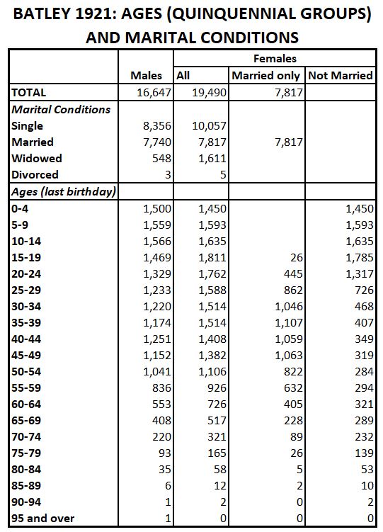 • Census of England and Wales, 1891 – 1921.