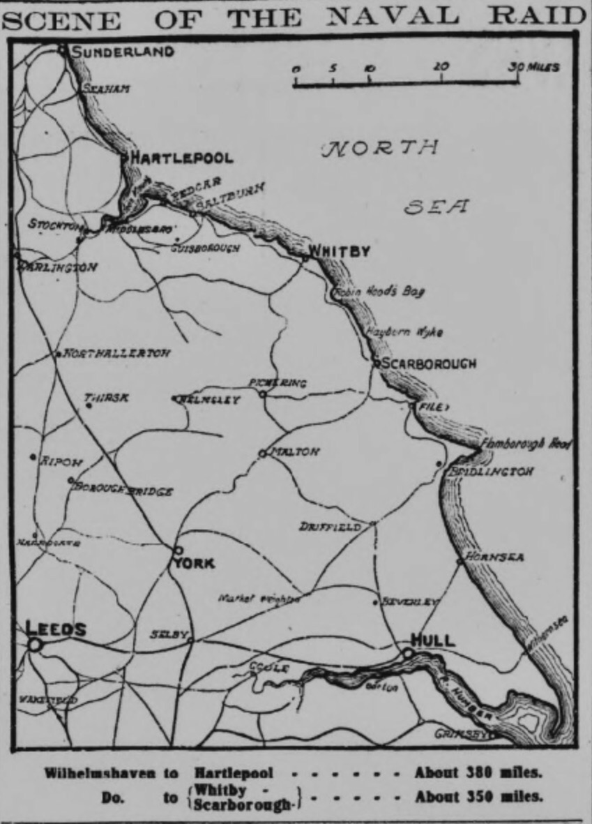 Several months later, whilst doing some general research, I realised the papers did contain the answer. The key was in the date. I’d been looking at it in narrow family terms, my grandma’s birthday. I’d not looked at any wider historical events. Besides being my grandma’s sixth birthday, Wednesday the 16 December 1914 marked the day German Imperial Navy ships Seydiltz, Moltke, Blücher, Derfflinger and Von Der Tann bombarded the east coast towns of Scarborough, Whitby and Hartlepool with a final toll of over 130 killed and almost 600 injured.