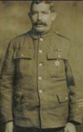 However, because of his age, I’d discounted him seeing his military service during the Great War. Combined with his age, his uniform in one of the family photos, with its three point-up chevrons on the lower left sleeve indicating 12 years good conduct, indicated pre-war service. I’d marked it as pre-1904, as he’d first turned up in Batley in January of that year. And by then he was a labourer. That was also his occupation when he married Ann Loftus in 1906. And also in the 1911 census.