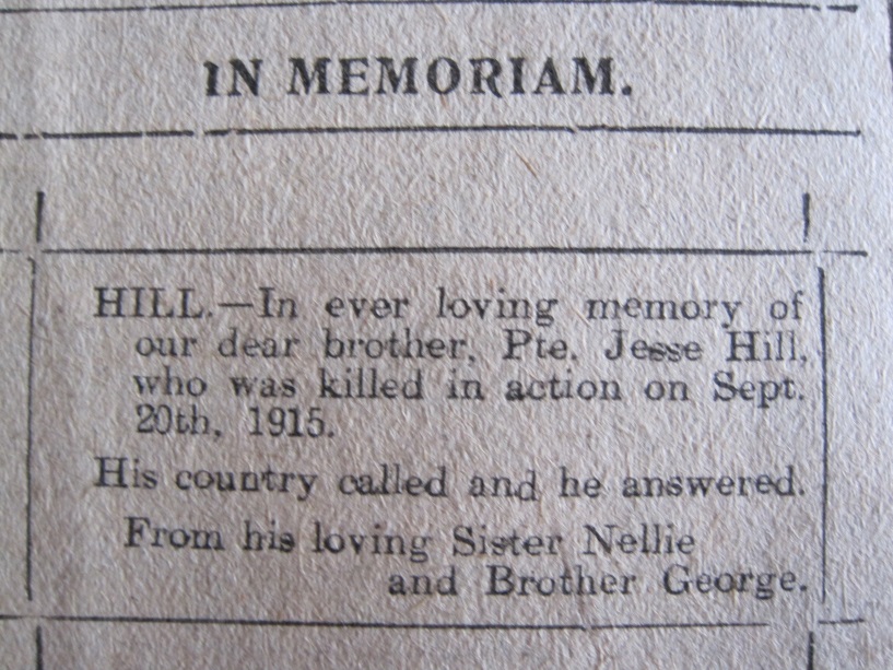 Pte Healey wrote to Jesse’s family and the details appeared in the local papers in mid-October. The newspaper article puts it bluntly as follows: