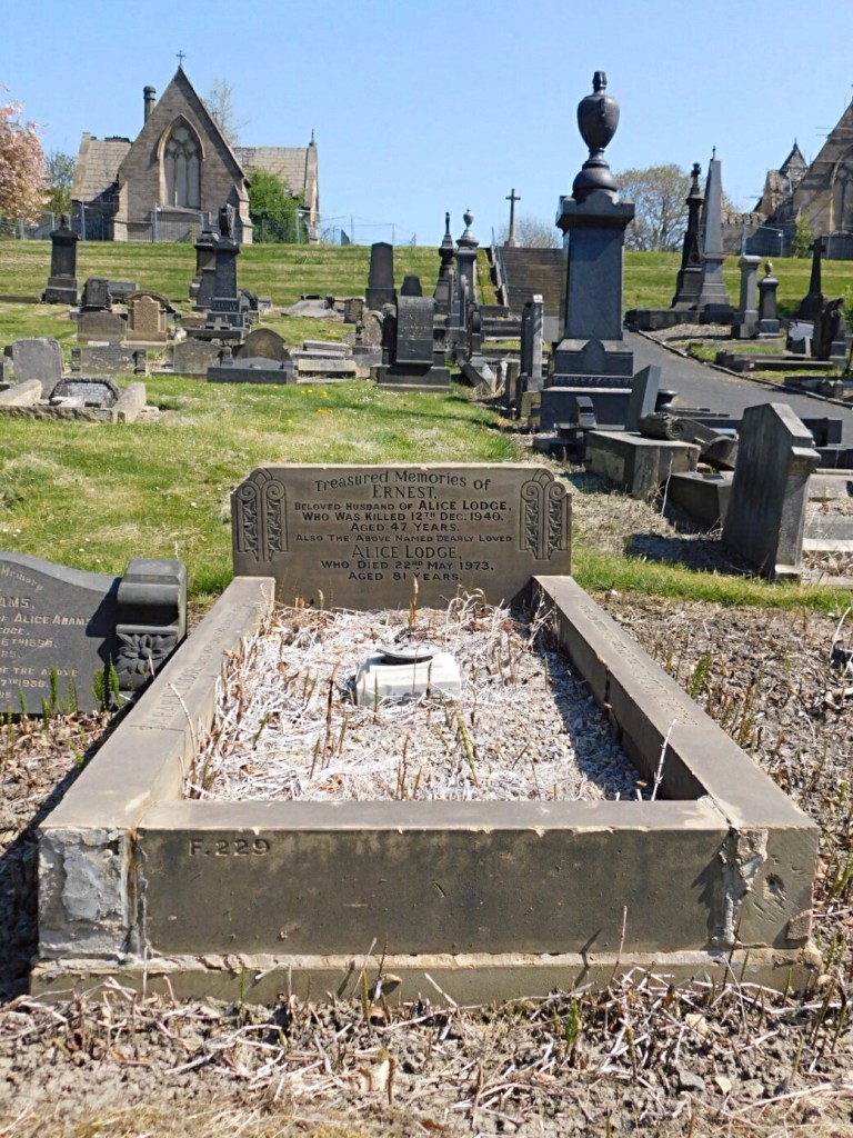 The Headstone of Ernest Lodge, Dewsbury Cemetery – Photo by Jane Roberts