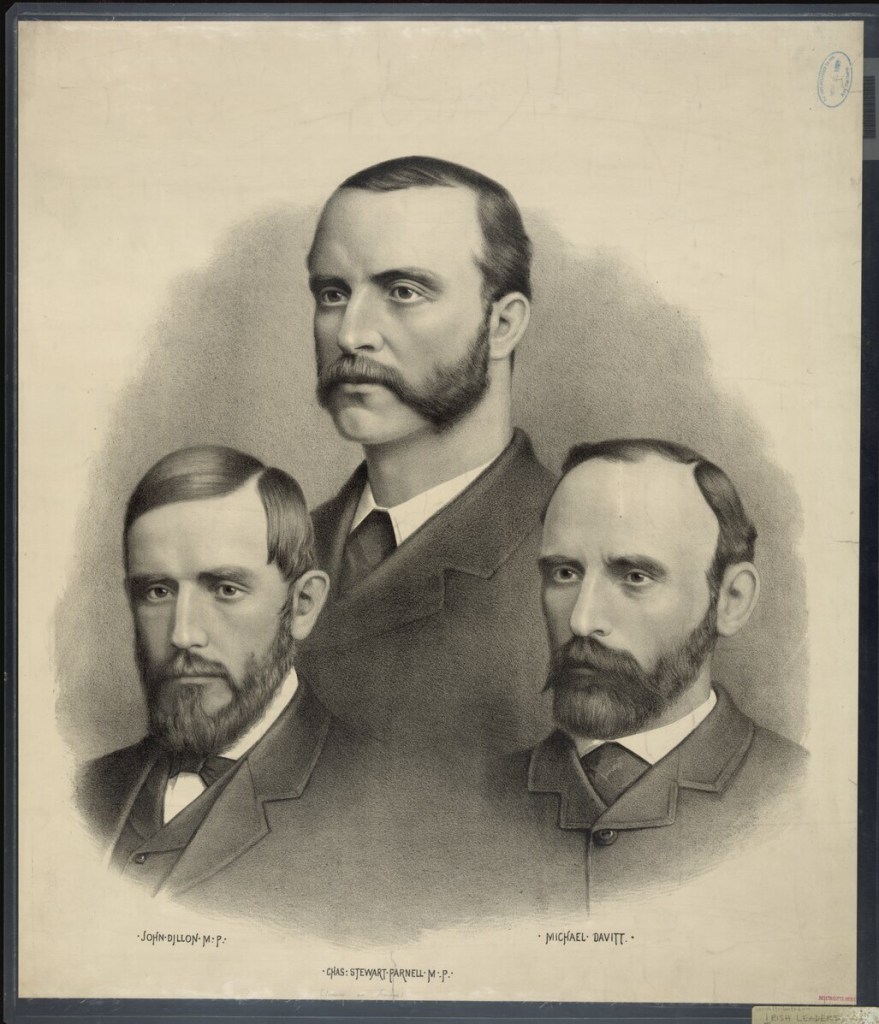 This organisation was founded in 1879 as a result of the drive and energy of Michael Davitt, fuelled by his own childhood memories as the son of an evicted tenant farmer from County Mayo. Charles Stewart Parnell, who became head of the Home Rule League the following year, was elected its President, thus drawing together two major issues – government and ownership of land in Ireland.