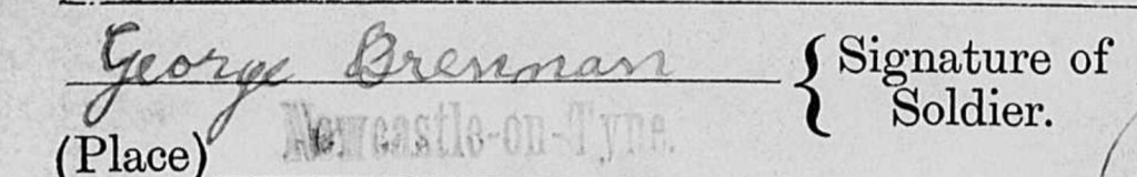 His age was given as 18 years two months, equating to a birth date of 1880, not 1879. I’m not overly concerned about this, as birthdates – particularly military attestation ones – can be notoriously inaccurate. But by far the most curious part of his attestation documents was the fact he signed, and served, under the name of George Brennen.14 Buried amongst these same service papers though is confirmation that he was indeed also known as Dominick.
