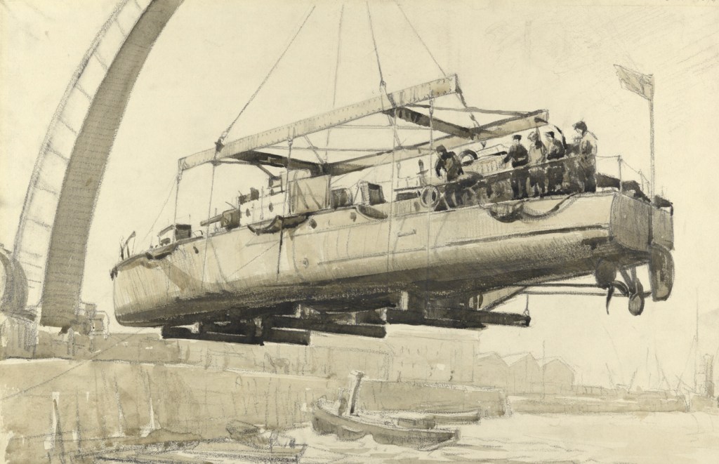 In early 1915, because the growing German submarine threat in Great Britain’s coastal waters and the need for more vessels to counteract it, US company Elco were contracted to provide 50 specifically designed Motor Launches (ML). The Lusitania sinking in May 1915 prompted a re-evaluation of the threat, and the order was increased to 550.11 Delivery was required by 16 November 1916. The initial 50 were built at Elco’s New Jersey site, but in order to get round America’s neutrality stance, the parts for the subsequent MLs were shipped to Canada for kit form construction there, and then onward transport to Britain. Amazingly, the delivery deadline was achieved.