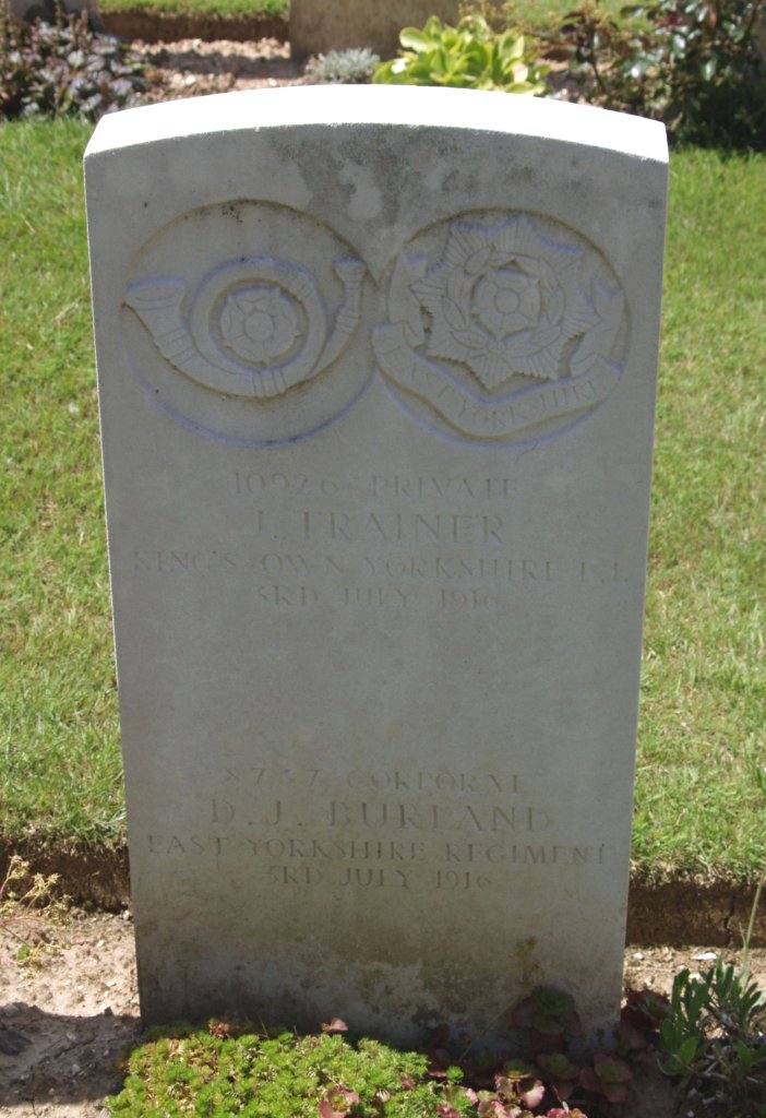 James’ headstone is shared with a Corporal from the East Yorkshire Regiment who died the same day. Because only two men are here their regimental badges do feature.