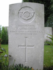 Regret 3539 Private Peter Gavaghan died November 3rd in 20th Casualty Clearing Station, France.6