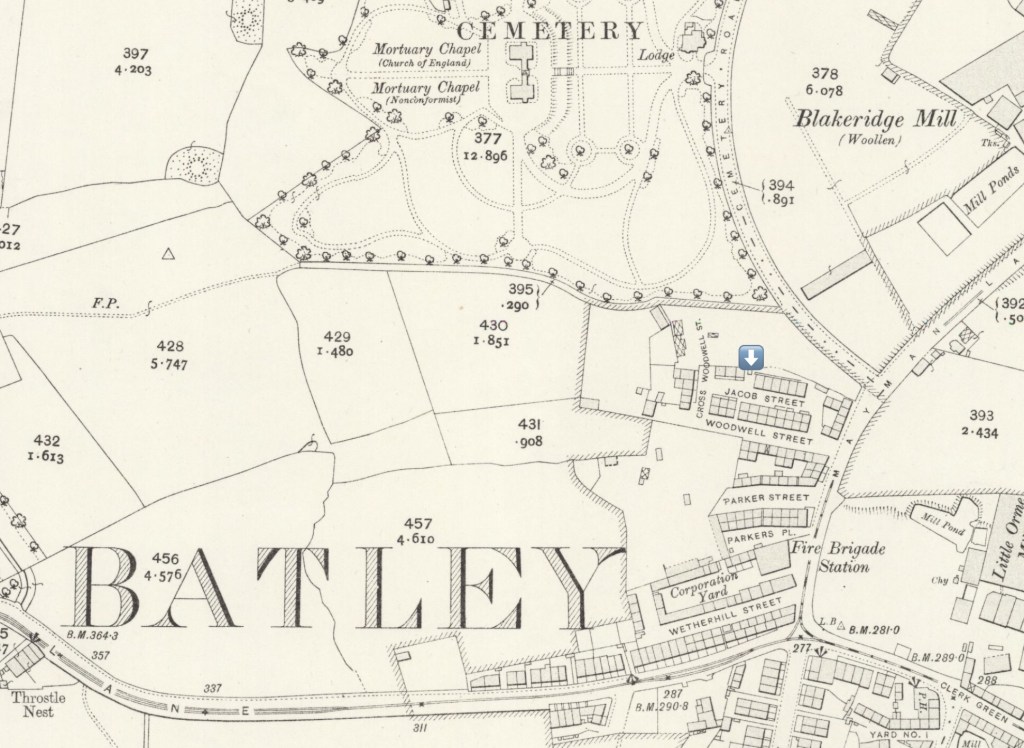 The family lived in the Woodwell area of town, with their address in the 1901 census recorded as Woodwell Street. By 1911 they were in neighbouring Jacob Street. This was the family address at the time of Peter’s death. Both streets are indicated in the map below.